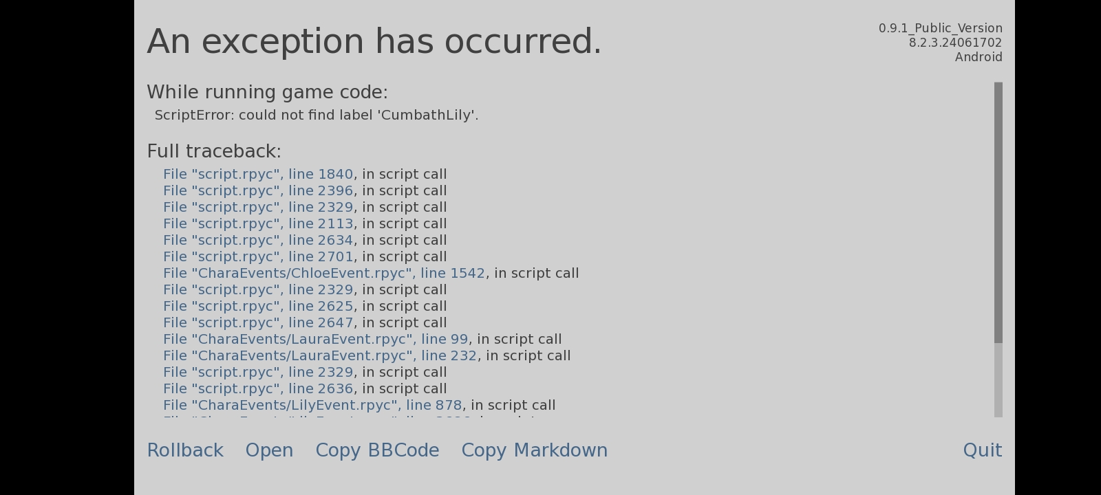 So when I visited lily in the shower it says that label "lily cumflation" could not be found and the amy and lily midnight event has no images it's just a black screen